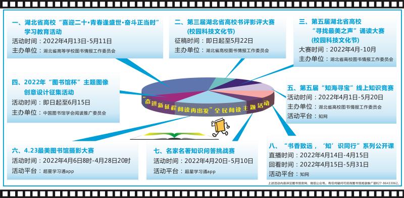 今年是党的二十大召开之年,也是“十四五”规划起步关键之年,为进一步深化党史学习教育,丰富校园文化生活,倡导全民阅读,建设书香校园。图书馆在一楼大厅开展“学史明理 学史增信 学史崇德 学史力行——中共党史精品图书汇展”活动,展出百余种党史精品图书。图书馆围绕“奋进新征程 阅读再出发”全民阅读活动主题,组织参加中国图书馆学会主办的2022年“图书馆杯”主题图像创意设计征集活动和第三届湖北省高校书评影评大赛;组织参加第五届湖北省高校“寻找最美之声”诵读大赛,并再次被校团委纳入校园科技文化节。