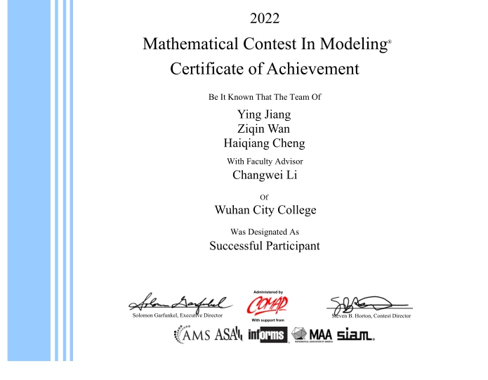 我校在2022年美国大学生数学建模竞赛中再获佳绩