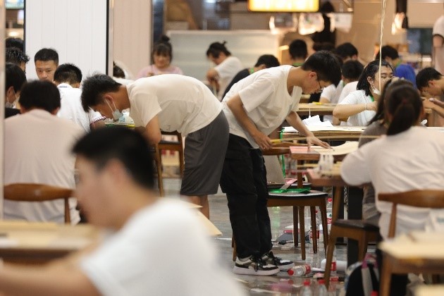 面对激烈的竞争,我校队员们沉着应对,在16个小时内完成模型制作、尺寸检测,顺利通关进入加载环节。