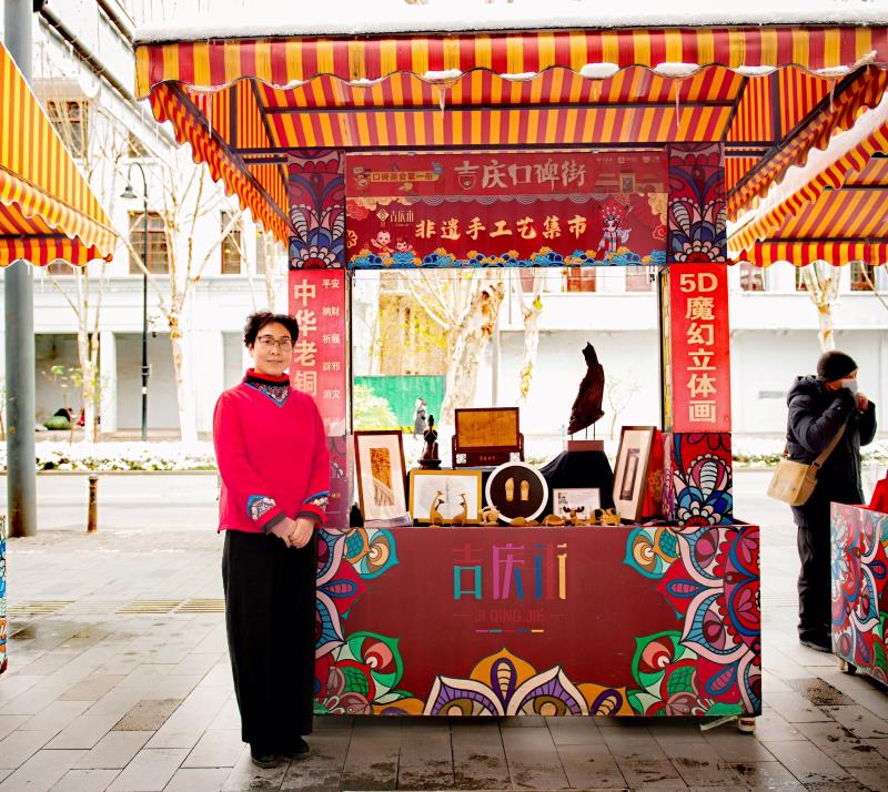 活动现场,有独具匠心的剪纸、汉绣、砚雕、木雕、烙画等非遗文化展,也有各式各样令人眼花缭乱的节目。市民们熙熙攘攘,看演出、逛市集、品美食,一派喜庆热闹的氛围。