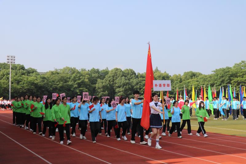 肖军在开幕式上致辞。他代表学院对本届运动会顺利召开表示热烈祝贺,并向全体运动员、裁判员和为运动会积极筹备而付出辛勤汗水的工作人员表示亲切问候。肖军表示,体育是德智体美劳“五育融合”人才培养的重要一环,是实现立德树人根本任务的基础性工程,是素质教育的重要方面。体育运动不仅可以增强人们体质,也有助于培养勇敢顽强的性格、超越自我的品质和勇于挑战的意志,有助于培养竞争意识和团结协作精神,对丰富校园文化生活,弘扬爱国主义、集体主义精神,增强国家和民族的向心力、凝聚力起着不可缺少的重要作用。学院历来高度重视学生体育运动,建有体育类学生社团16个、阳光体育俱乐部11个,还有8个校级体育代表队。校园体育文化节,“新生杯”、“院系杯”篮球赛、乒乓球赛、羽毛球赛、趣味运动会等体育赛事活动,极大地丰富了学生校园课余生活,打造出了学院的“校园体育运动”特色。希望学生们积极响应“每天锻炼一小时,健康工作五十年,幸福生活一辈子”的号召,走下网络,走出宿舍、走向操场,把汗水洒向运动场上,把矫健身影留在竞赛比赛中,将勇往直前、顽强拼搏、精诚团结、锐意进取的体育精神变成促使我们不断成长的精神动力。