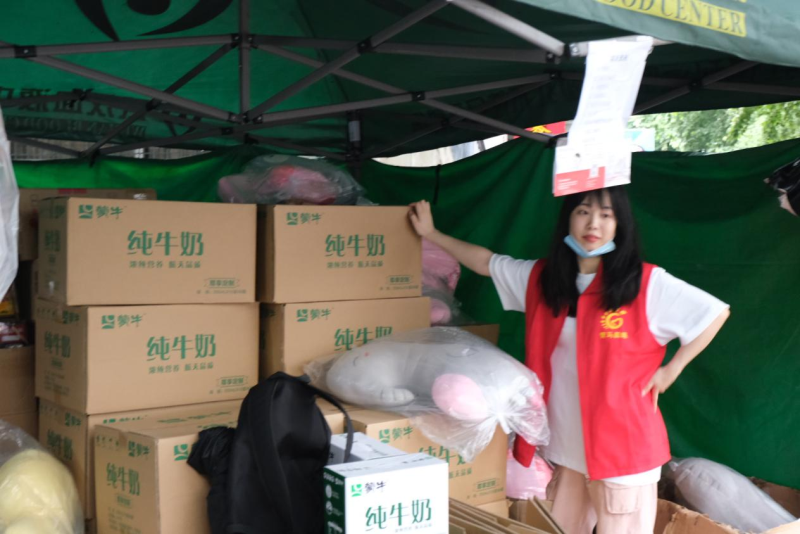 当日正午时分,雨势突然加大,热心的志愿者撑伞护送学生们前往献血准备棚,志愿者用自己的行动传递着爱的火炬。