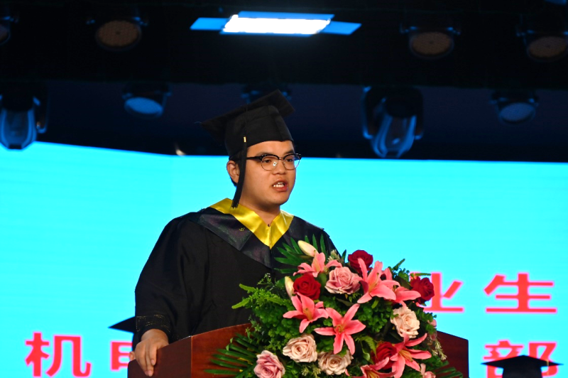 “互联网+”大学生创新创业大赛湖北省金奖、“挑战杯”湖北省银奖、国家奖学金获得者、机电工程学部2019级机械电子工程专业学生李健轲代表优秀毕业生与母校惜别。毕业不是结束,而是新的开始,相信大家会带着在母校里成长四年的收获,乘风破浪,书写新的华彩篇章,为母校争光。