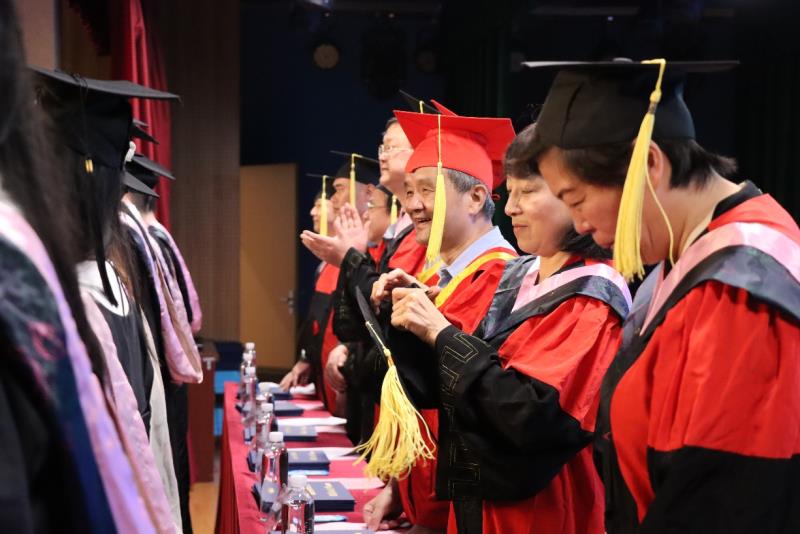 伴随着悠扬的旋律,2023届毕业生代表依次上台,院领导为毕业生颁发学位证书、拨穗正冠并合影留念。2023届毕业生大学四年划上圆满句号。