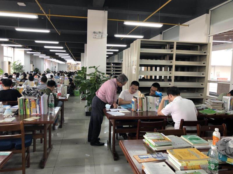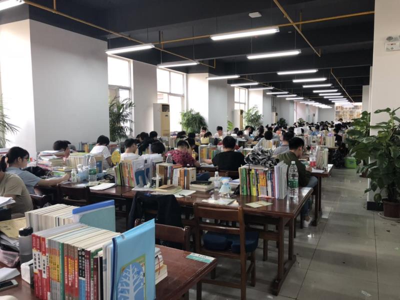据悉,图书馆改造工作已进入尾声,预计将于10月下旬正式开馆。为及时给考研学子提供更好的学习环境,学院于8月底先将图书馆四楼自主学习室的800余个座位开放试运行。虽还未正式投入使用,但自主学习室里已是座无虚席,每张课桌上都贴有学生的学部和姓名,并堆起了资料,成为同学们复习备考的固定场所。