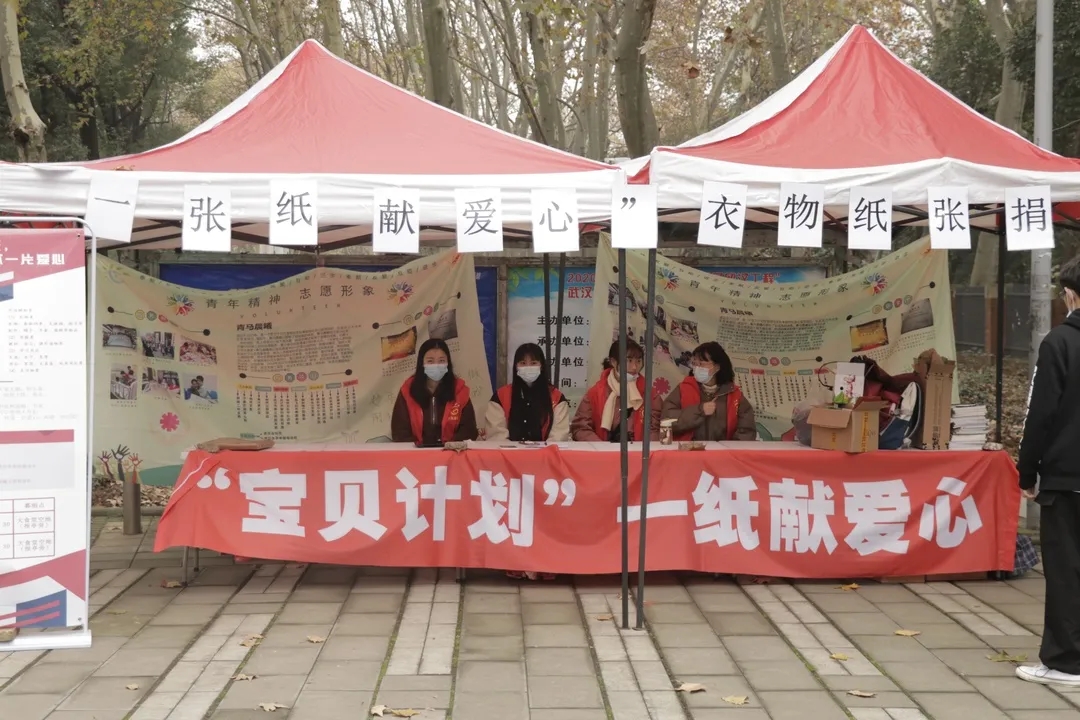 “ 一张纸献爱心”项目于2017年5月启动。“青马晨曦”志愿服务队积极响应党中央、国务院关于“建设节约型社会”的战略号召,通过线上线下宣传,发动全校捐赠废旧纸张、衣物等旧物,再由湖北省慈善总会统一变卖后积聚善款,帮扶湖北省内特困儿童群体。6年来,此项目共收集到2600余斤旧衣物和废旧书纸,变卖后积聚的善款帮扶了10余名特困儿童。“青马晨曦”志愿服务队被湖北省慈善总会评为“一张纸献爱心”项目示范团队,湖北电视台曾在活动开展期间前往学校进行专访和报道。
