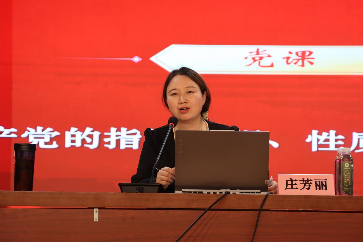 开班典礼结束后,马克思主义学院副教授庄芳丽以《中国共产党的指导思想、性质、宗旨等基本理论》为题作党课第一讲,从党的性质入手,介绍了世界上第一个无产阶级政党,以及《共产党宣言》的发表和其深远影响,回顾了中国同盟会的成立及其根本纲领,通过对比不同政党的性质和纲领,强调了中国共产党的先进性和代表性,使入党积极分子对党有了更加全面、深刻的认识。她还通过引用古人关于人生四大喜事的言论以及党的二十大代表张永生对入党喜悦的表述为切入点,要求在座的入党积极分子要珍惜这个光荣的时刻。