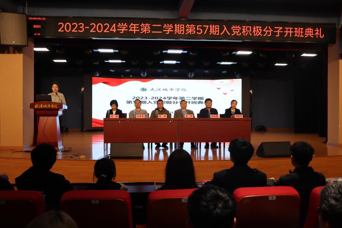 新闻网讯(高级记者 盛鑫涛 摄影 刘子涵)4月11日晚,学院第57期入党积极分子开班典礼暨开班第一课在大学生活动中心隆重举行。学院党委书记肖军、各学部党总支书记(副书记)以及376名本期党校学员参加典礼。典礼由党委组织部副部长关晓玲主持。