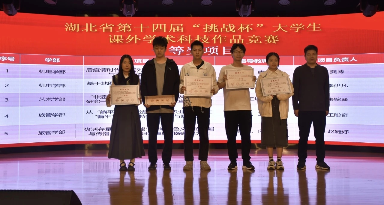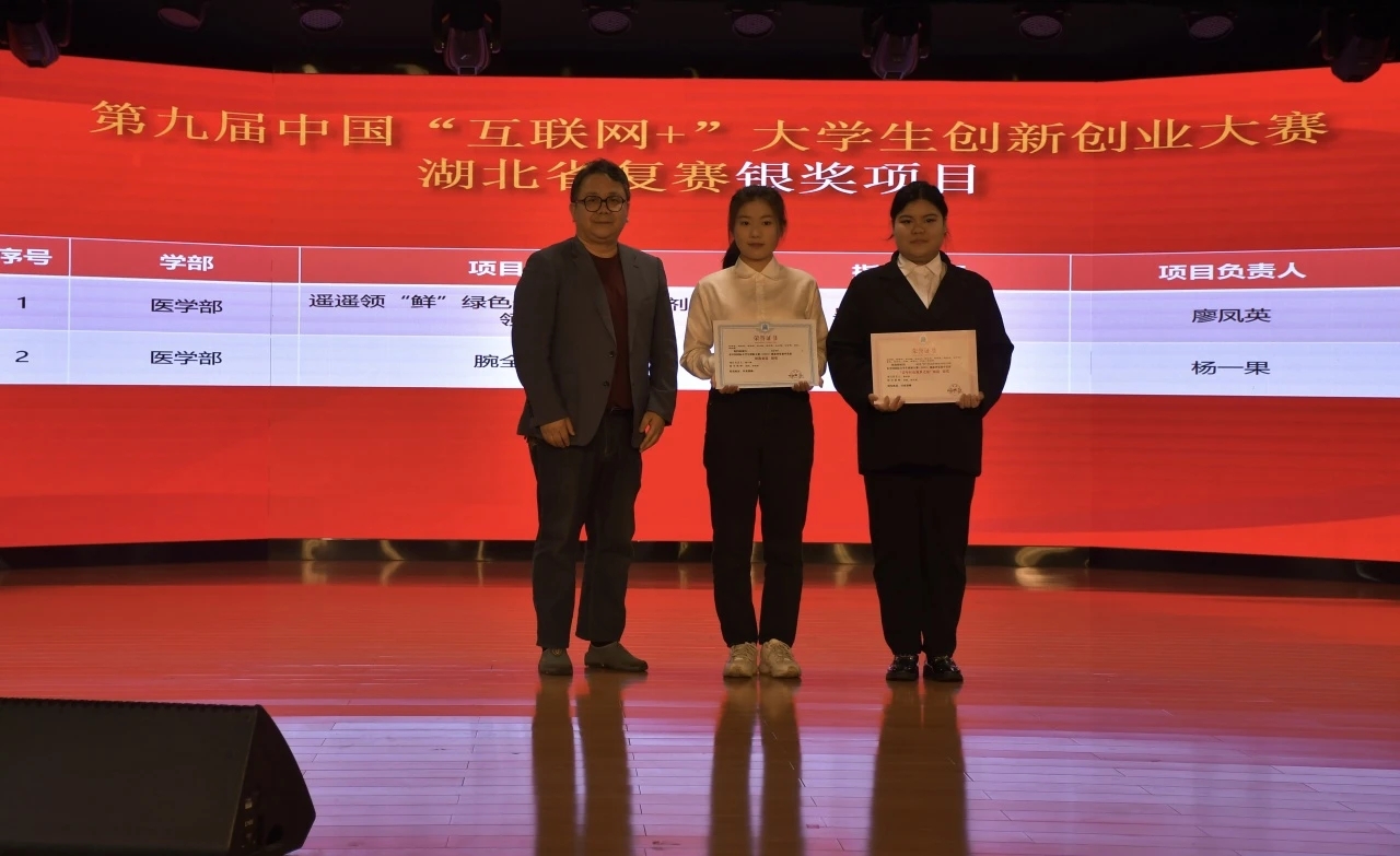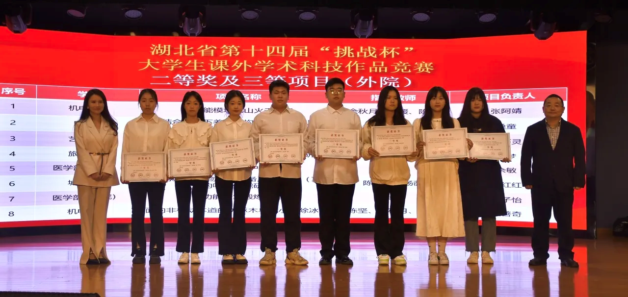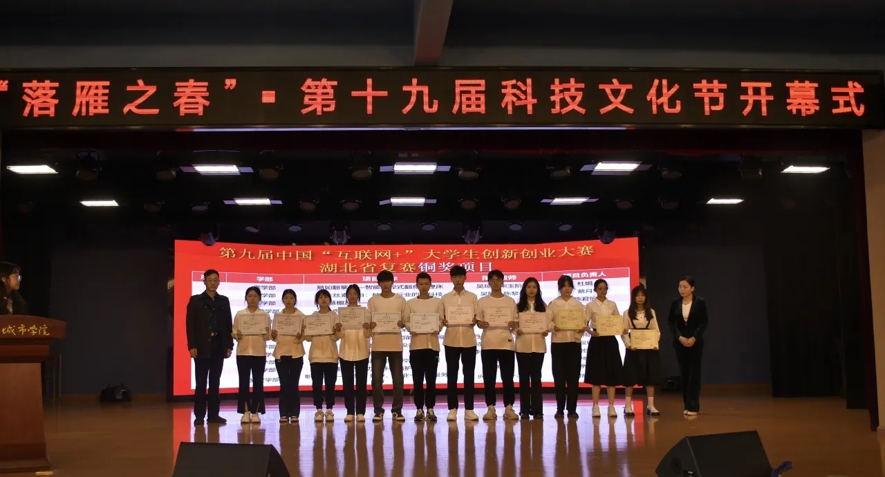 大会对第九届中国“互联网+”大学生创新创业大赛湖北省赛获奖、湖北省第十四届“挑战杯”大学生课外学术科技作品竞赛获奖进行了表彰,与会领导及嘉宾为获奖者颁奖。