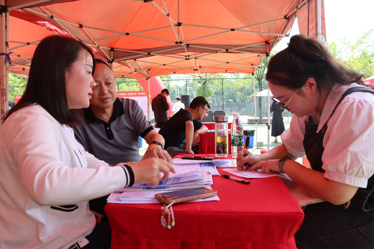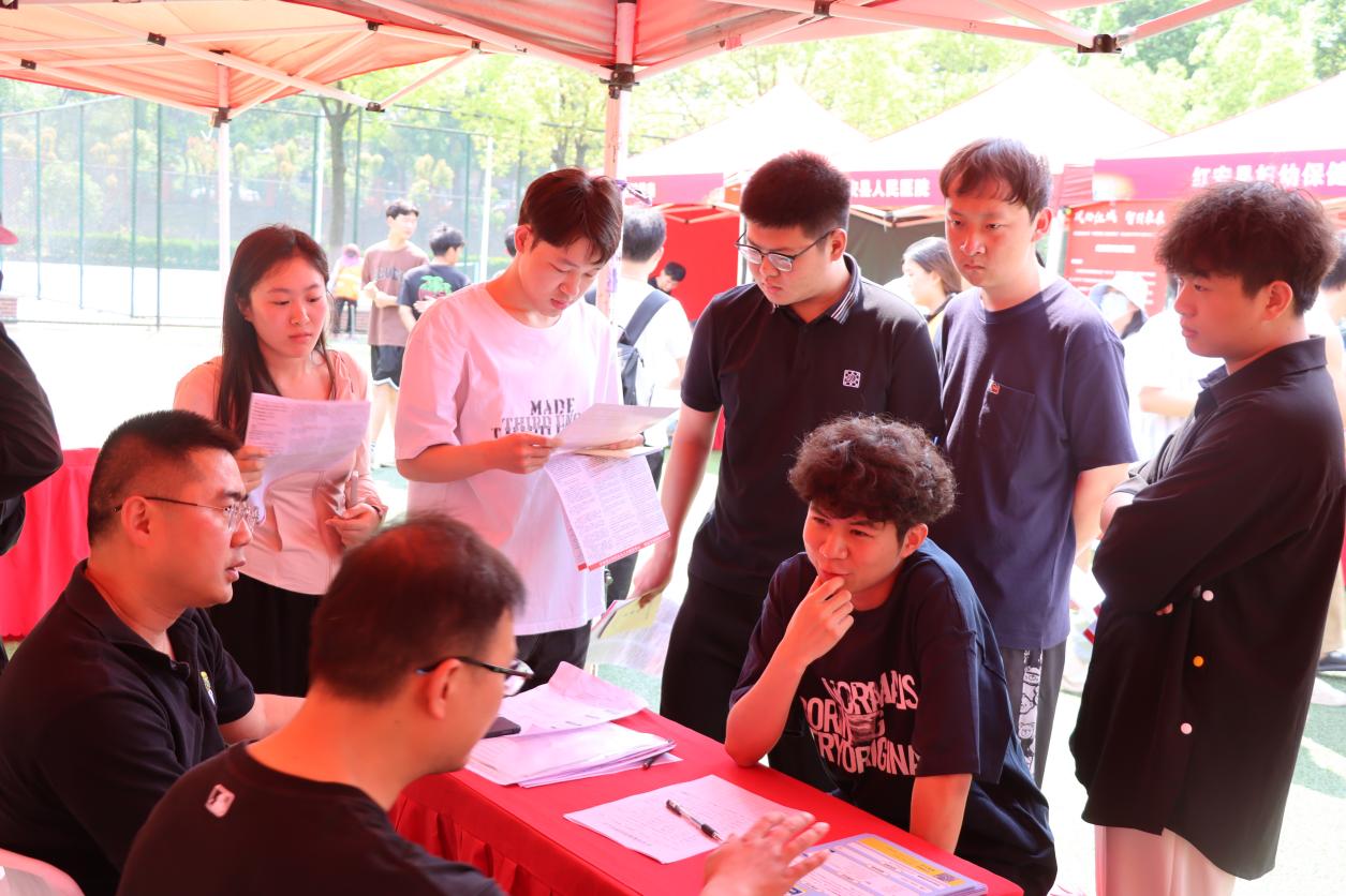新闻网讯(高级记者 蔡海燕 摄影 蔡海燕 盛鑫涛 李乔丽 刘子涵)5月8日上午,凤栖红城 智引未来——红安县2024年“才聚荆楚·百县进百校”武汉城市学院专场招聘会在我院足球场盛大举行。本次招聘会吸引了包括红安县人民医院、湖北省金圆投资开发集团有限公司、红安娃哈哈食品有限公司在内的68家企事业单位参与,涵盖了信息技术、生物、医药、环保、健康、旅游、金融、建筑、机械电子、文化旅游、教育、医疗等行业,提供了700多个就业岗位。此次活动吸引了近千名毕业生参与,其中248名学生达成就业意向,20名学生现场签约。