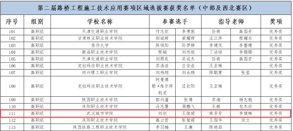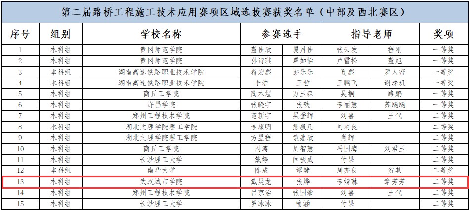 新闻网讯(记者 吕妍)在2024年一带一路暨金砖国家技能发展与技术创新大赛(以下简称“大赛”)中,我校城建学部学子在路桥工程施工技术应用赛项上获得中部及西北赛区二等奖1项、三等奖1项、优秀奖1项,在建筑工程智能建造施工技术应用赛项上获得三等奖1项、优秀奖3项,3组队伍进入到国家级赛事。