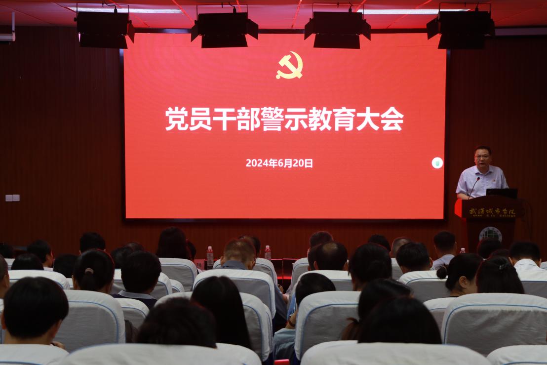 新闻网讯(高级记者盛鑫涛)以案施教,以案示警。6月20日上午,我校在东湖校区南一(2)号报告厅召开党员干部警示教育大会,通过集体观看警示教育片《一体推进“三不腐”》,充分发挥警示教育“治未病”作用,推动学校党纪学习教育走深走实。全体校领导,副科级及以上干部,教工党支部书记、纪检委员参加大会。大会由党委书记肖军主持。