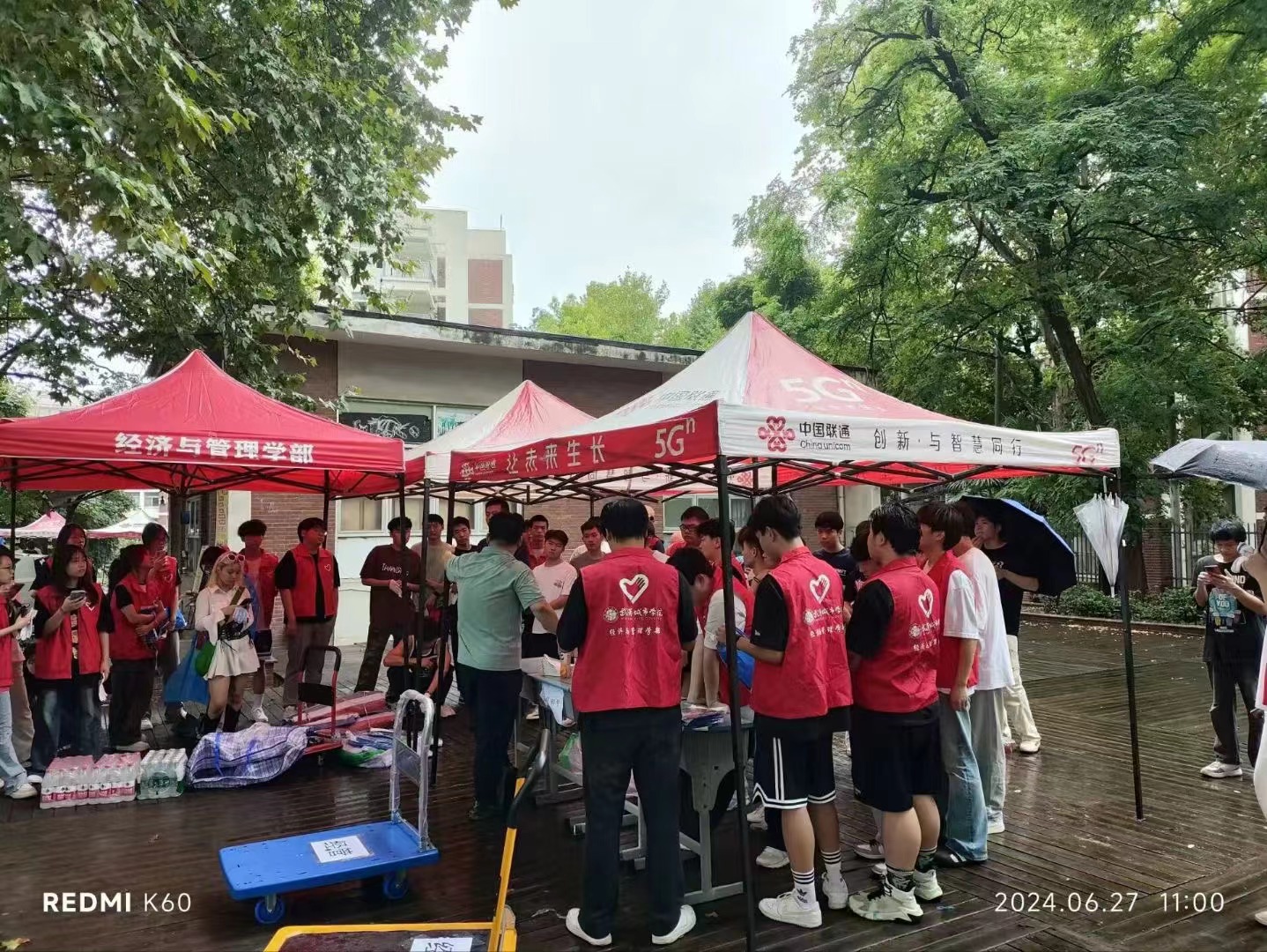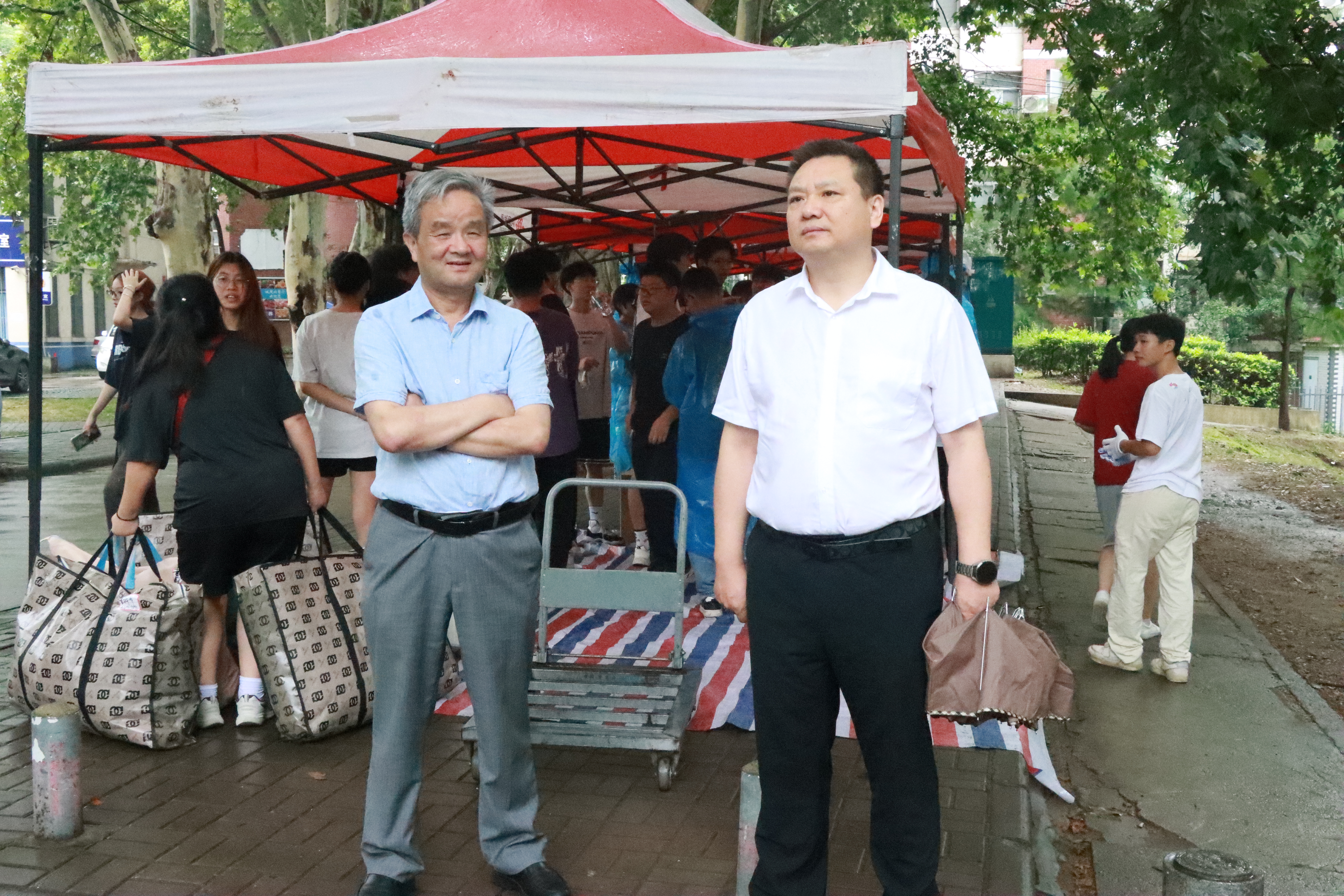 到达东湖校区时,天空飘着蒙蒙细雨,早已等候在此的志愿者们立刻热心上前为搬迁来的学生提供温馨服务,让新到东湖校区的学生倍感温暖。