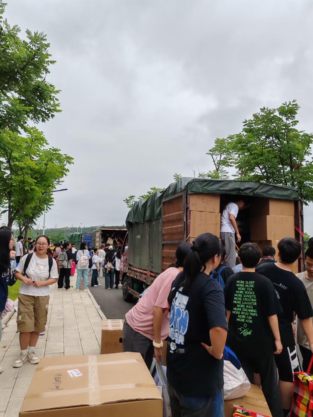 6月27日早上6点,34台货车、16台客车到达红安校区指定停车位点,搬迁工作拉开序幕。在现场,各学部共安排500余名志愿者,协助学生们将行李搬上货车,7点半,一辆辆满载学生、行李的客车、货车依次离开红安校区,往东湖校区进发。