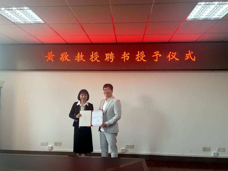 赵光红副校长为黄敬教授颁发聘书