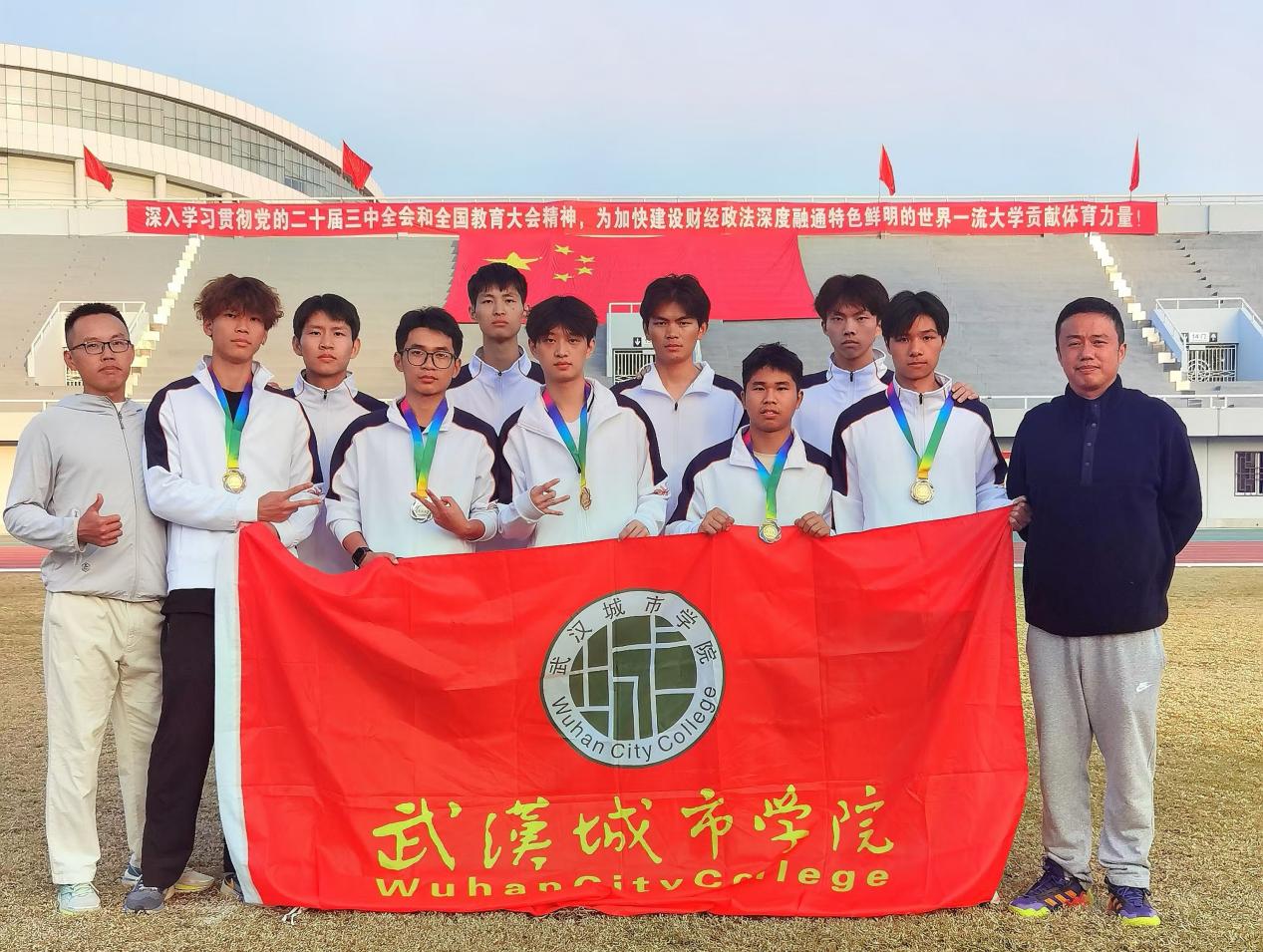新闻网讯(高级记者 蔡海燕)9月8日至10日,2024年湖北省普通高等学校大学生田径运动会在中南财经政法大学(南湖校区)新体中心隆重举行。我校田径队在领队马浩林的带领下,由教练员许凌、王康茂、彭辉精心指导,10名运动员奋勇拼搏,取得了男子甲组400米金牌、男子甲组400米栏银牌、男子甲组4×400米接力铜牌以及男子甲组4×100米接力第八名的优异成绩。这是我校自2018年以来,时隔6年再次参加全省田径锦标赛,取得的佳绩令人振奋。