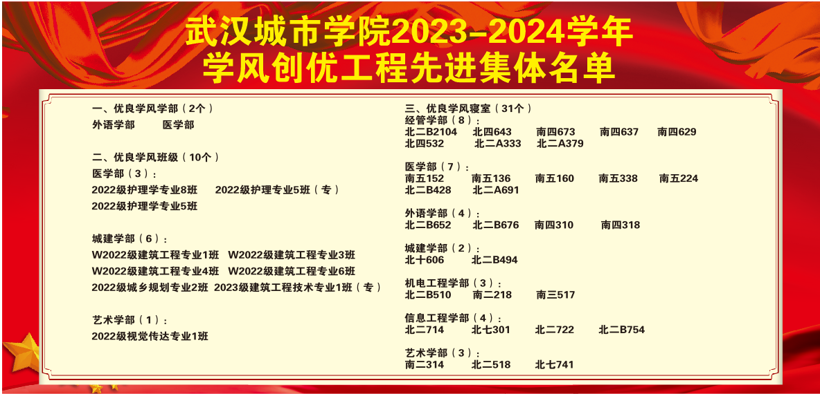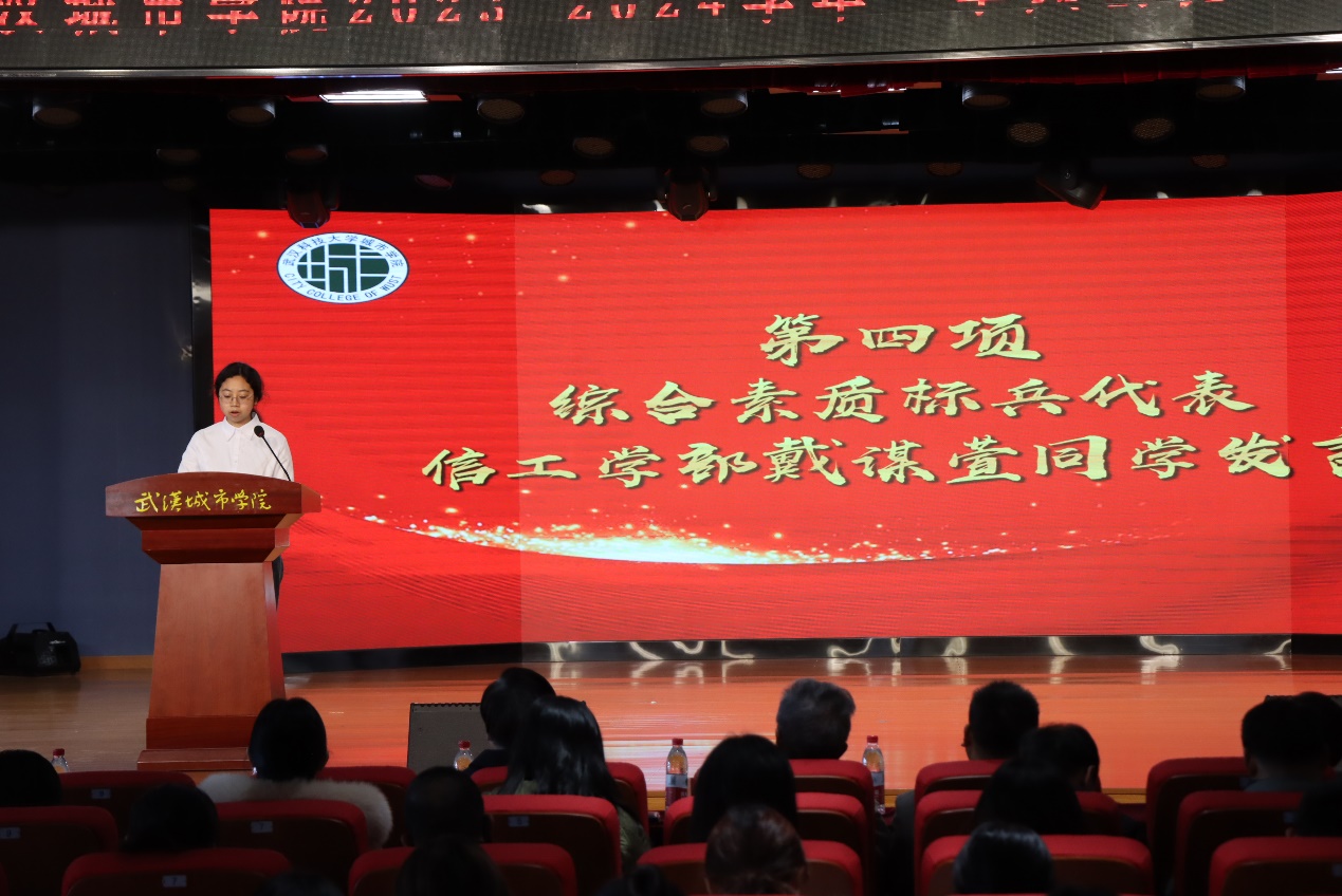 副校长宣读《武汉城市学院关于表彰2023-2024学年度学生先进个人的决定》《武汉城市学院关于表彰2023-2024度学年学风创优工程先进集体的决定》,对先进个人与先进集体进行表彰。