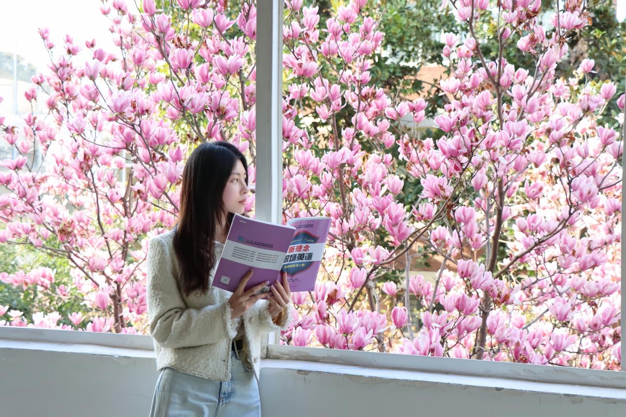 教学楼窗外簇簇玉兰探入教室,聆听朗朗书声。花瓣飘进教室,制成书签,成了春日最鲜活的注脚。