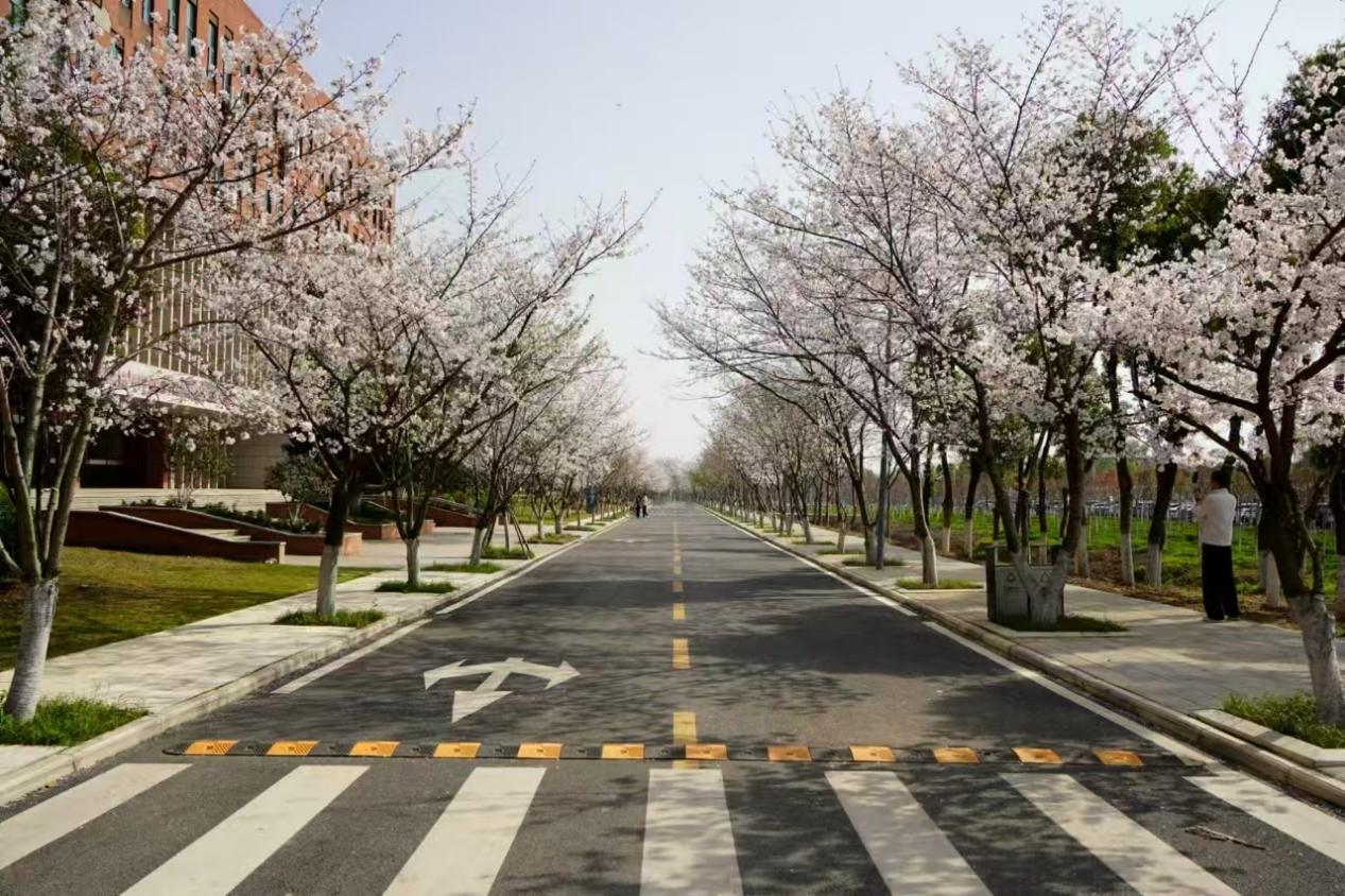 樱花大道上落英簌簌,学子捧书徐行,衣角掠过花影。我校种植各品种樱树700余株,香樟、桂花、玉兰、法桐等40余个品种树木8千余棵。绿化覆盖率占据总面积62%,让每一步都踏在春的脉络上。樱花路向南,香樟与法桐撑起绿穹,实验楼、图书馆如明珠散落林间,是城院赠予学子的春之礼单。