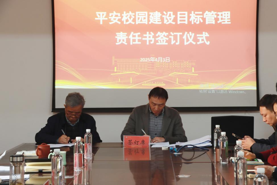 会上,校长陈建勋与各职能部门、各学部负责人签订了2025年平安校园建设目标管理书,通过岗位责任清单逐级分解安全任务,将风险防控要求嵌入教育教学、行政管理全流程,形成“一级抓一级、全员共担责”的校园安全治理新机制。