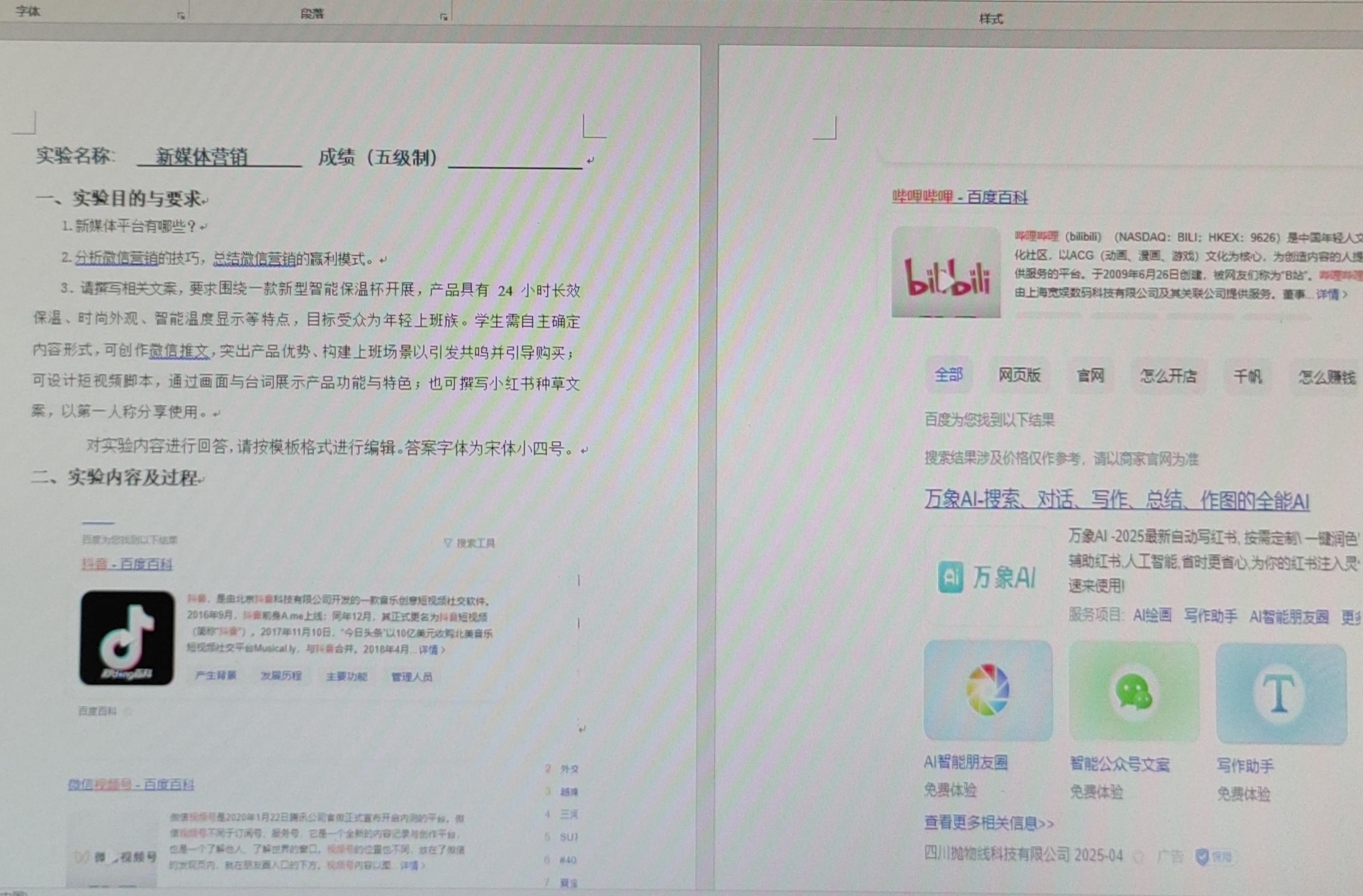 李庆老师采用“理论授课+实战模拟”模式,提前一周布置与营销方案相关的任务,鼓励学生从消费者视角设计吸睛方案。在上机课堂上,李庆老师先让同学们结合微信公众号,Deepseek等AI软件分析微信营销的技巧。“微信营销的方式有很多,软文创作是其中一种。在制作软文时,我们不能只想着卖货,要先提供有价值的内容——产品的功能、用途、材质等信息。”等同学们了解相关内容后,李庆老师让同学们围绕一款具有24小时长效保温、外观时尚、能显示智能温度的新型智能保温杯的产品,自由创作软文、撰写种草文案,制作直播脚本。通过上机实践,同学们对营销策略有了初步的了解。