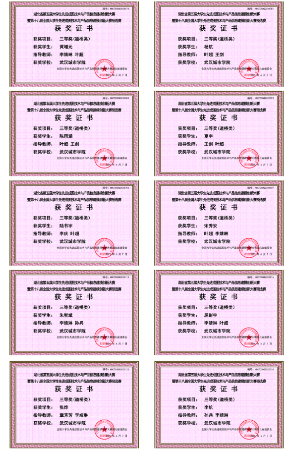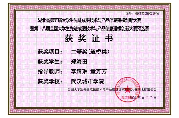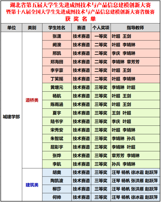 新闻网讯(通讯员叶超)近日,第十八届全国大学生先进成图技术与产品信息建模创新大赛湖北省赛,在武汉理工大学南湖校区圆满落幕。我校城建学部学子以精益求精的工匠精神,与全省32所高校2437名精英同台竞技,最终总获奖20项,以道桥类个人一等奖1项、二等奖5项、三等奖10项、建筑类个人三等奖4项的骄人战绩,创下我校参赛史上最佳成绩!