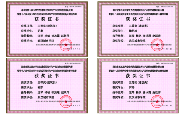 此次佳绩的取得,彰显了我校“励志修德,勤学创新”的办学理念。从理论教学到实践应用,从单项突破到综合素养,城建学部构建了"教赛融合、以赛促学"的特色培养体系。"大鹏一日同风起,扶摇直上九万里"。入围全国总决赛的18位健儿已整装待发,他们将秉承"敢为人先、追求卓越"的武汉精神,在全国舞台上继续挥洒创意,谱写属于武汉城市学院的荣耀华章!