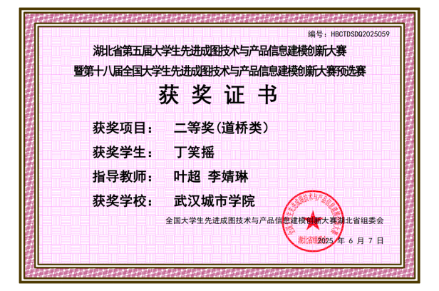 道桥类省赛技术赛道二等奖证书