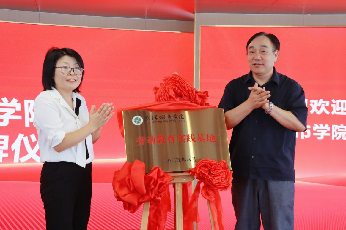 会上,陈建勋与湖北未来科技高科技农业股份有限公司董事长尹维坊共同签订了劳动实践基地合作协议。武汉城市学院授予湖北未来家园高科技农业股份有限公司“劳动教育实践基地”牌匾。
