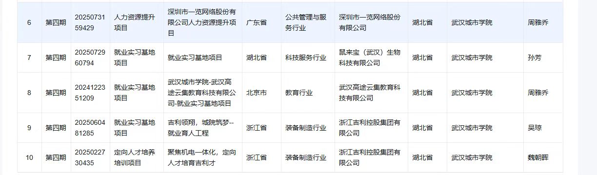 新闻网讯(通讯员 李治)近日,教育部公布2025年第四期供需对接就业育人项目立项名单,我校10个项目成功获批立项。项目类型涉及定向人才培养培训项目(2项)、人力资源提升项目(1项)、就业实习基地项目(7项),是学校深化产教融合、优化人才培养模式、汇聚更多社会力量共同做好高校毕业生就业工作的重要成果。