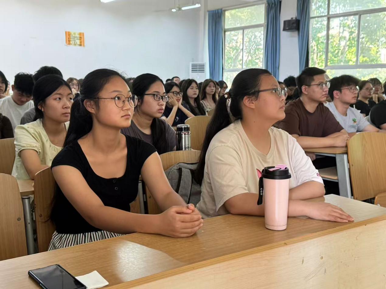 南一2号报告厅内,校领导和教职工们身着统一白色衬衫,气氛庄重肃穆,当屏幕中鲜艳的五星红旗冉冉升起,全场肃立,行注目礼,以最崇高的敬意向国旗致敬。