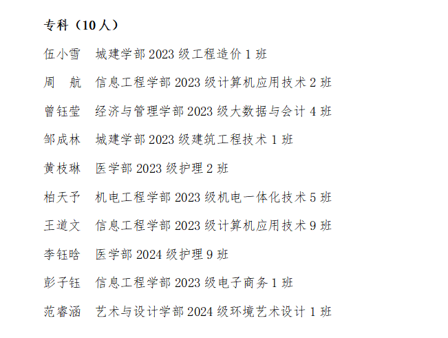 今年入围的38名候选人中有5名党员、13名预备党员、18名共青团员,6人获得过落雁十佳青年,5人获得过国家励志奖学金,4人获得过综合素质标兵。城建学部城乡规划专业2022级2班的彭若婷,连续两年在专业、德育及综合素质成绩排名专业第一,连续三年获得专业、德育奖学金,连续两年获得国家励志奖学金。荣获国家级、省级、校级奖项共40余项。信息工程学部计算机科学与技术专业2022级2班的黄凡枫GPA为4.3/5,专业德育排名第一,雅思6.5分,发明3项科研专利、4个科技创新项目。