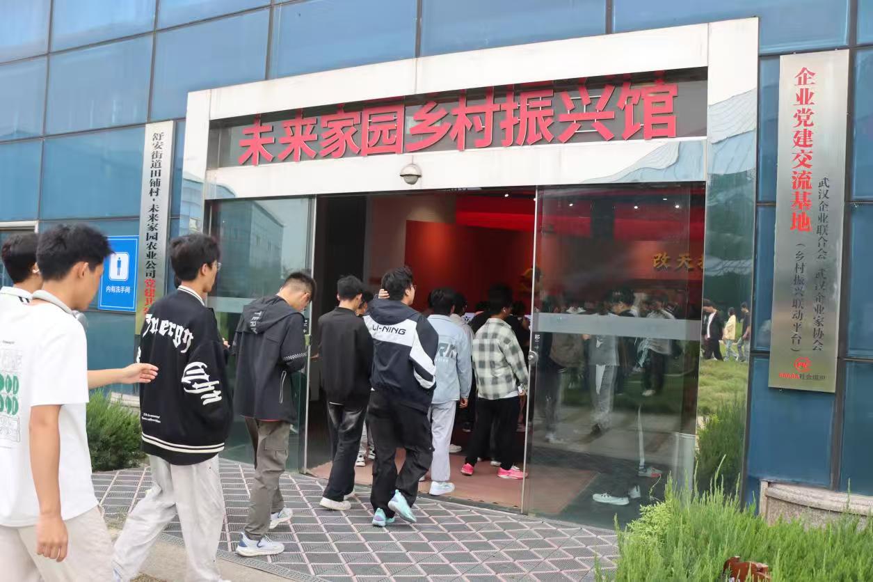 在参访交流环节,学生分三批参观了未来家园的乡村振兴红色党建馆、蛹虫草培育馆和楚商文化馆,并详细了解了未来家园在农业物联网应用、无土栽培技术研究、蛹虫草培育及深加工、现代农业科普基地建设、乡村振兴实践等方面取得的成果和发展愿景。