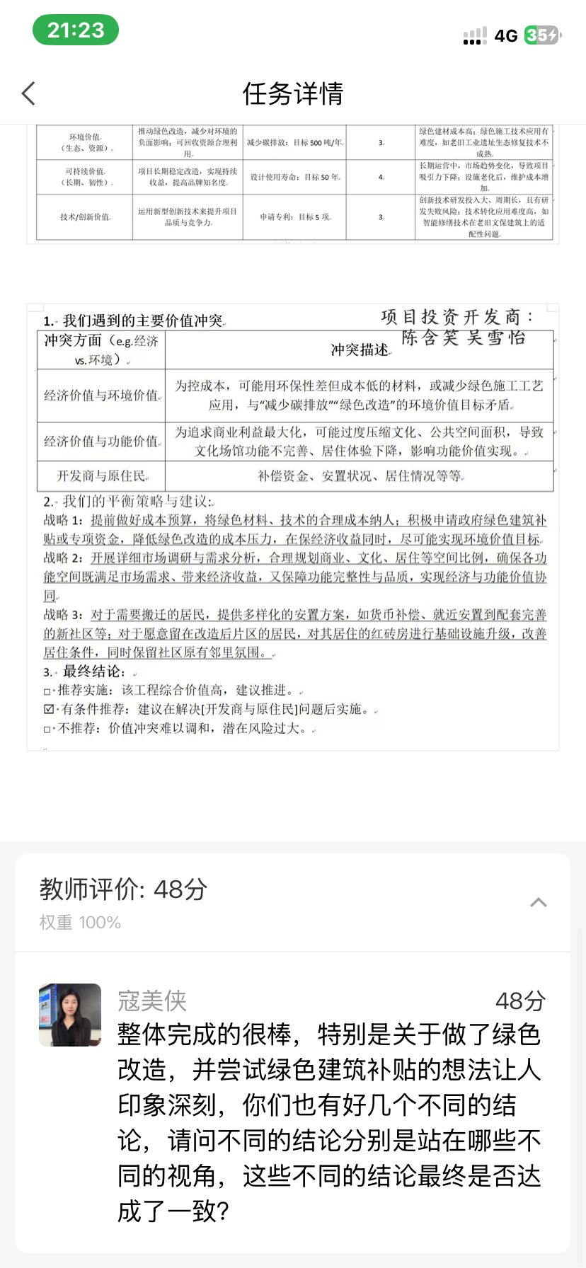 当传统课堂遇上角色扮演,知识不再是被动接受,而是主动演绎。在周雯雯老师的课上,“角色扮演”是常有的环节,书本上枯燥的知识一下子“活”了起来。你可能会看到“李局长”在为城市发展精打细算,而“陈经理”则拿着厚厚的项目书,描绘着未来的蓝图。他们之间的讨论,不是简单的“同意”或“反对”,而是两种不同立场的真实碰撞。另一边,“历史学家胡主任”像是从历史中走出来,用长远眼光审视每一个决定;而“汤业主”则代表普通老百姓发声:“这房子到底实不实用?值不值得买?”这样的课堂,让冷冰冰的知识有了温度,也让高高在上的理论回归到了日常生活。周雯雯老师就是用这种方式,把每一堂课都变成了同学们难忘的“知识剧场”。