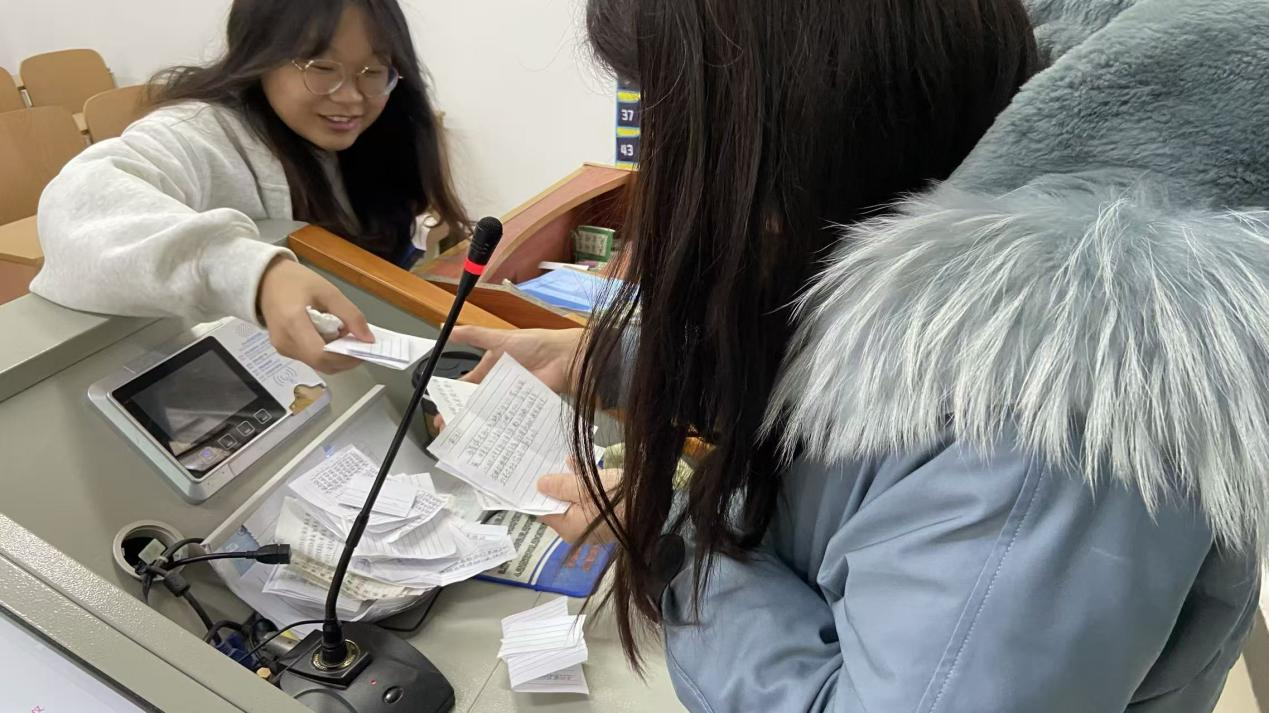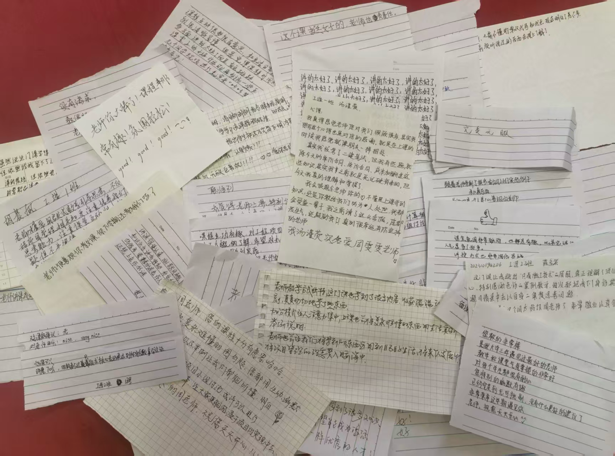 新闻网讯(记者 汤谨荧 王奕) “每次上您的课都觉得时间过得特别快,真希望还能接着听下去……”学期最后一节《工程项目管理》课,62封手写书信被悄悄塞到了周雯雯老师手中。这场“无声的告白”,为期末课堂增添了别样的温情。