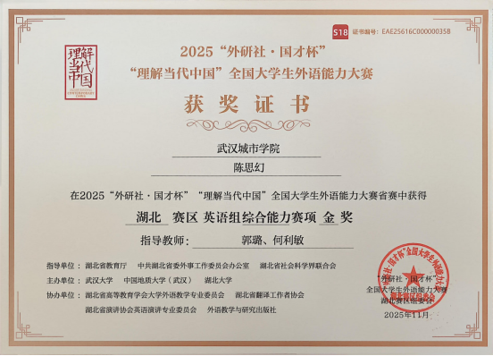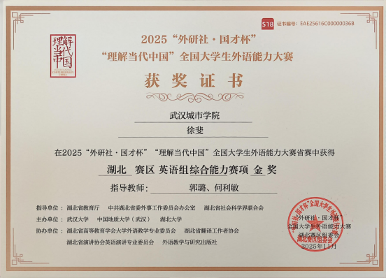 此次获奖成果丰硕,共囊括国家级铜奖1项,湖北省金奖3项、银奖4项、铜奖2项、优胜奖9项,获奖覆盖全部五大竞赛赛道。获奖学子凭借流利的语言表达、严谨的逻辑思辨与鲜活的中国故事叙事,在众多参赛选手中脱颖而出,不仅彰显了我校外语教育教学改革的显著成效,也为中外文化交流传播注入了青春力量。