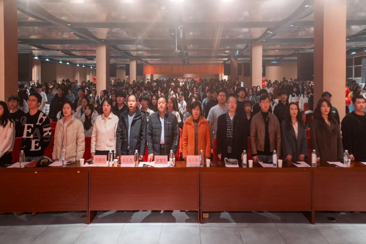 随后,曾繁华教授代表学部向全体师生致以节日的问候,简要回顾了2025年来学部在教育教学、学科竞赛及学生活动等方面取得的突出成绩,并展望2026年发展目标。曾繁华教授表示:“2025年,经济与管理学部考研录取率7.72%、专升本录取率42.5%,高质量就业成效显著;学科竞赛获国家级奖项56项、省级143项,校内赛事屡获佳绩。展望2026年,全体师生将以更昂扬的姿态,将个人理想融入强国建设征程,在知识的瀚海中深潜求索,于时代的熔炉中百炼成钢,共同谱写学部发展新篇章。”