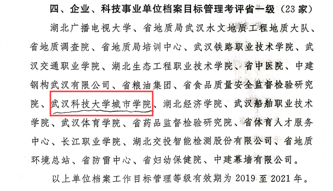 新闻网讯(通讯员 万青)湖北省档案局近日下发《湖北省关于档案目标管理考评结果的通知》(鄂档文[2019]13号),我院被评为档案目标管理省一级单位。