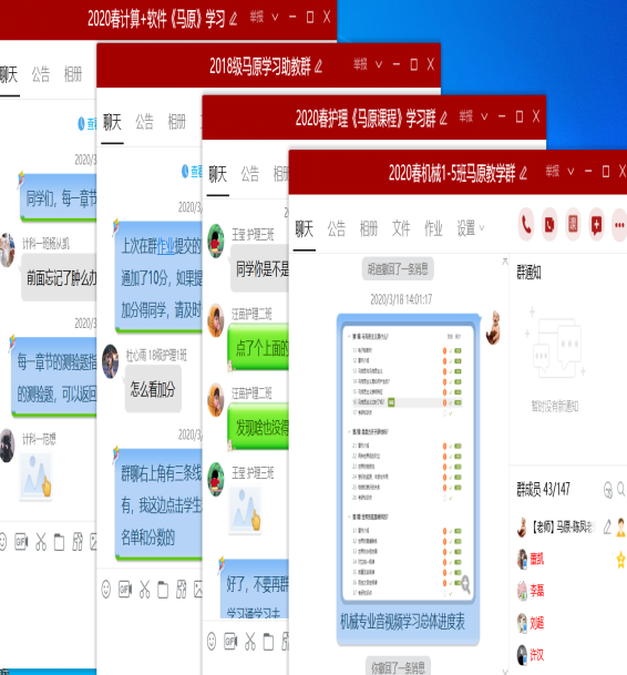 建立学习通网学平台在线班级、课程专业QQ群,助教QQ群,通知学生及时加入以方便在线直播答疑与交流。