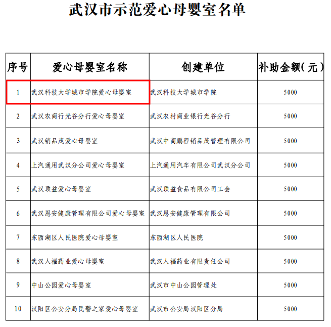 此次武汉市示范爱心母婴室评选活动由武汉市总工会开展,经全市各级工会组织自下而上择优推荐申报,由市总工会女职工委员会组织评审考核,市总工会党组会审议通过。全市共10个爱心母婴室获评 “武汉市示范爱心母婴室”,7 个爱心托管班获评 “武汉市示范爱心托管班”,获评单位将获得专项支持基金5000元。