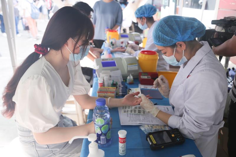 新闻网讯(记者袁晚露 实习记者严橙紫)6月1日,我校携手武汉血液中心、同济医院、协和医院在北教学楼旁广场举办 “爱心助力 圆梦六一”无偿献血志愿服务活动。我校444名学生积极参与其中,当日献血量达155400ml。他们用行动凝聚爱心,传递温暖正能量。