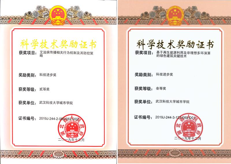 2019年,学校作为第一完成单位荣获湖北省科技进步奖三等奖1项、作为第二完成单位荣获湖北省科技进步奖二等奖1项,这是学校在科学技术奖励方面取得的重大突破,是对近年来学校科研人员求真务实、开拓创新、奋力拼搏的充分肯定。近年来,学校教职工公开发表核心期刊论文295篇;出版专著、教材114余部;获得授权的发明专利3项、实用新型专利12项、软件著作权10项、外观设计专利2项。
