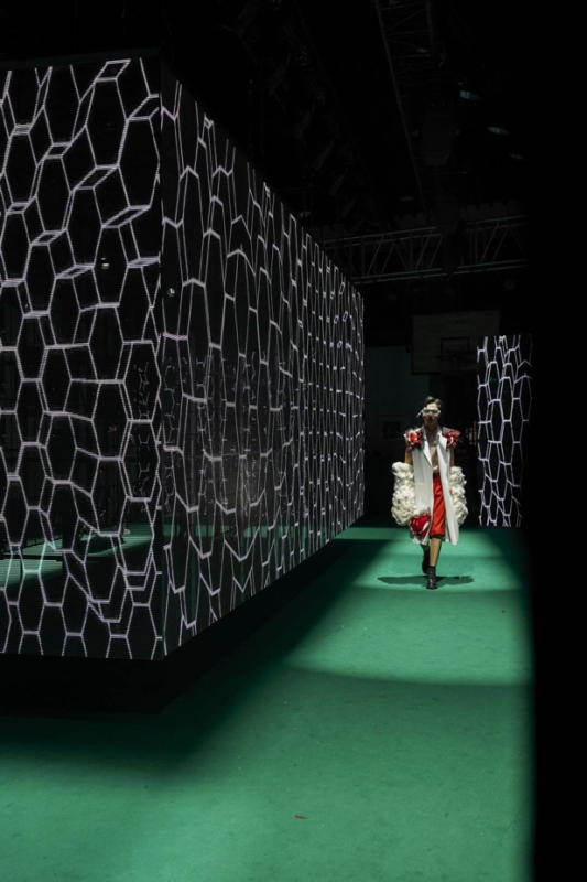 吴曌介绍说:“从初稿的图纸到最后成衣作品,师生对每一件作品都倾注了大量心血,学生们到广州、杭州、上海等地采集面料,教师参与指导服饰制作的每个过程,师生反复沟通修改了多次。”