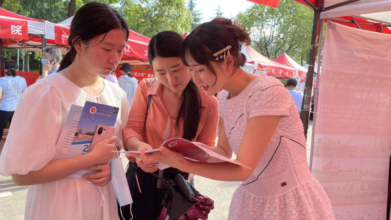 在众多招生宣传点中,天门的招生宣传点异常火爆。参加招生宣传的胡老师说:“很多学生都是直奔我们学校而来,事先准备的宣传手册半个小时就发完了,最后只好留下一张宣传海报、一张宣传手册让家长扫码,再跟踪交流。”
