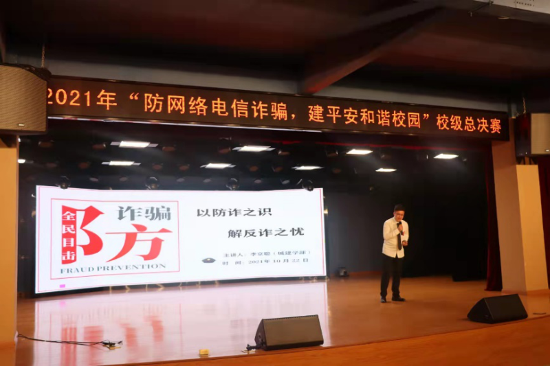 今年5月,学校在全校范围开展“防网络电信诈骗,建平安和谐校园”演讲比赛,经过班级选拔、校级复赛两轮选拔,10名优秀参赛选手进入校级总决赛。决赛现场,10名选手以饱满的精神面貌参赛,他们或用亲身经历,或用典型案例和反诈短视频,讲述自己对电信网络诈骗的理解和认识。评委团根据学生临场表现、演讲内容等进行打分,现场评出一等奖1名、二等奖2名、三等奖3名。