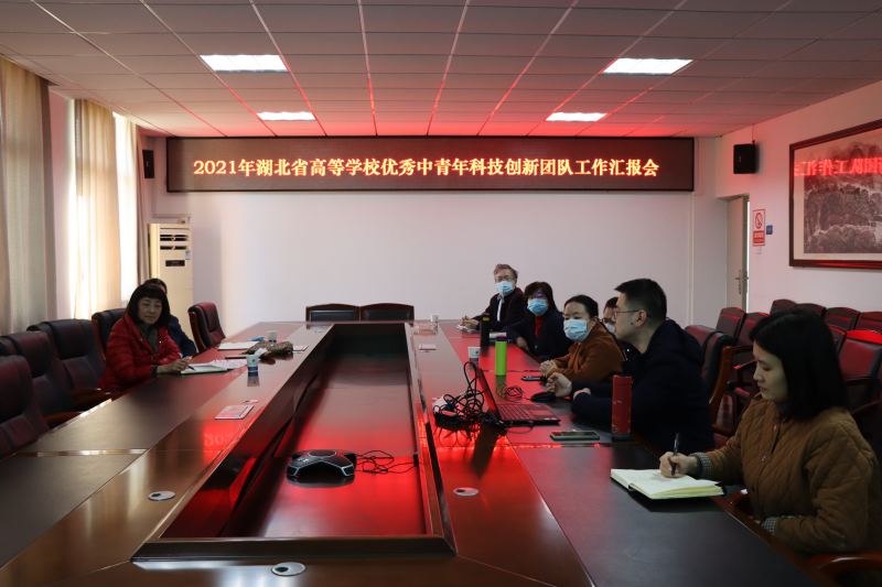 新闻网讯(通讯员 侯畅)根据《省教育厅关于下达2021年度科研计划项目和高校优秀中青年科技创新团队的通知》(鄂教科函[2021]13号)和《湖北省高等学校优秀中青年科技创新团队管理试行办法》(鄂教科[2004]1号)精神和要求,11月23日上午,我校在行政楼A315会议室召开2021年湖北省高等学校优秀中青年科技创新团队工作汇报会,了解团队建设情况,做好后期团队考核工作。团队所在学部主任、团队带头人、团队骨干成员参加会议。会议由副院长赵光红主持。