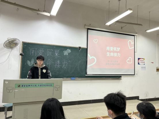 比赛伊始,参赛选手们紧密围绕“用爱筑梦,生命接力”的主题,贴合自身学习生活实际,从不同角度表达了自己对器官捐献、无偿献血方面的理解,情感充沛,抑扬顿挫,富有感染力。其中,最让人印象深刻的是来自20级建筑学二班的郑慧棋同学讲述的关于“生命摆渡人”毅然决然捐献自己多数器官拯救他人的故事,他们面对生命大义甘愿承责,不计回报地给予苦海中的人们生命与希望的精神,引起在场观众的强烈共鸣。最后一位登场的选手阮科华同学在演讲中结合自身献血的亲身经历,配合清新活泼的台风,用生动的语言讲述了无偿献血的好处,把现场的气氛又一次推向高潮,赢得了同学们的阵阵掌声。