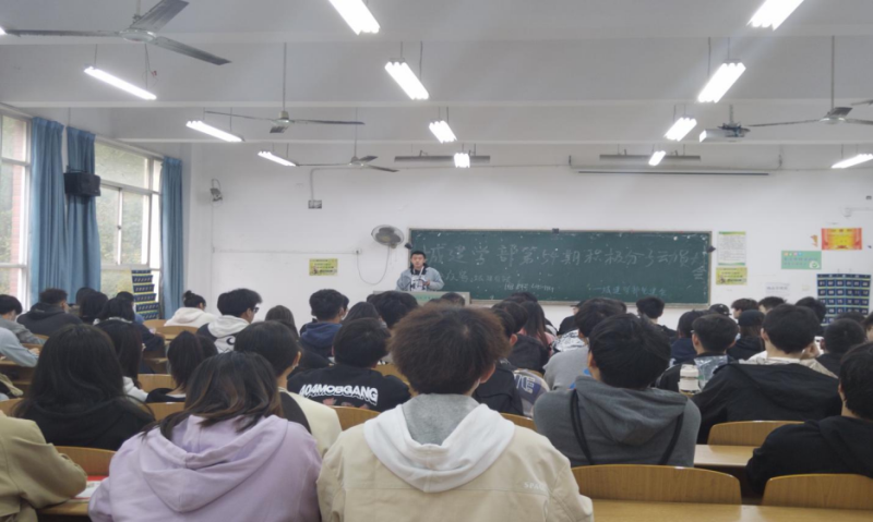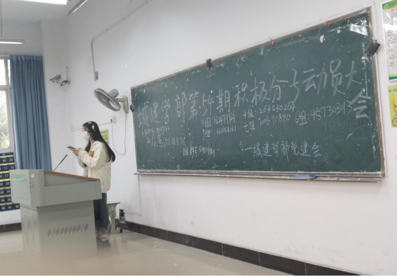 (党群在线讯)2022年10月27日中午12时10分,城建学部又迎来了新一批入党积极分子,并在南四教学楼4201教室举行了第五十四期入党积极分子动员大会。城建学部党建会会长唐郑威出席了本次会议并发言。希望大家在学习党课时深入了解党组织,通过党组织对他的考验,不辜负学校党支部的期望。