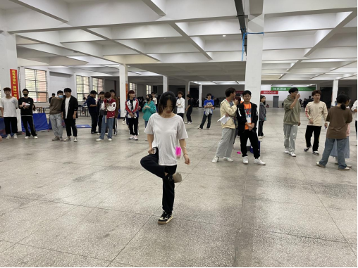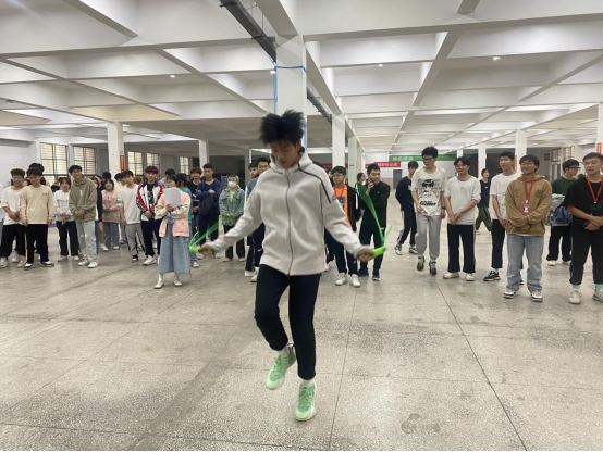 秋雨绵绵,但挡不住同学们的热情,运动会现场早已热火朝天。首先进行的是一分钟毽球和毽王赛,赛场上,轻盈的毽子化身为欢快的精灵,在运动员的脚尖上下翻飞,翩翩起舞,展现了良好的运动基础及心理素质。跳绳比赛的选手们也是顽强拼搏显身手,彩绳舞动展英姿。在场的观众不时爆发出激烈加油声和鼓掌声,为各参赛选手精湛的技艺喝彩。