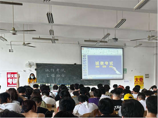 进一步加强学风、考风建设,营造良好的学习氛围和公平的竞争环境,提高广大学生的诚信意识,城建学部于6月4日在南教学楼开展考风考纪教育活动。